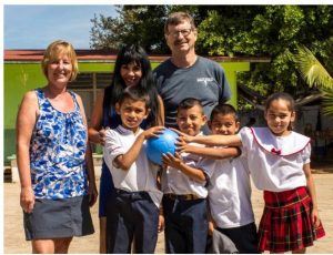 My long-time friend and retired nurse, Vicky Flores, has for many years collected and redistributed donations and contributions to the poor of the region. Cash donations are converted to food and medical supplies. Last fall, she donated a computer to a nearby school. She is able to provide through her dispensary food, clothing, medical supplies and school supplies to our neediest families and communities. One of Vicky’s regular contributors of collected donations is Sandra Bell of Victoria, B. C. Last fall, Vicky, Sandra and I made a donation visit to the primary and secondary schools of Divisadoro, a few kilometers north of La Peñita. Among the clothing was a set of donated soccer jerseys. The uniforms were an immediate hit and soon a futbol game broke out on the playground, kicking around their tattered ball.