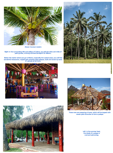 I could see and hear him hacking away at the clusters. They don’t drop them to the ground, but again use rope to lower them gently. I imagine this is to avoid cracking and damaging the fruit. They will later sell these coconuts to various vendors and the tree palm trimmings are the very thing they use to weave lovely thatched palapas, which we see in so many tropical places. They provide perfect shade and a waterproof area to sit and enjoy the view.
